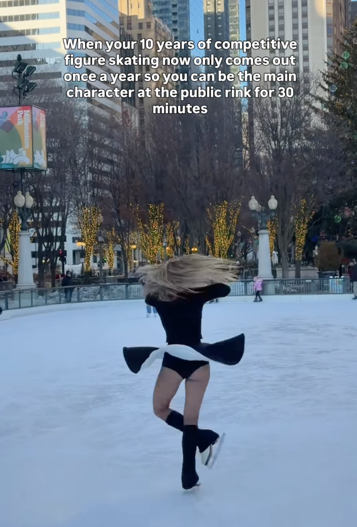 The Bachelor Nation star also shared the video on Instagram, writing, “When your 10 years of competitive figure skating comes out once a year, so you can be the main character at the public rink for 30 minutes.”