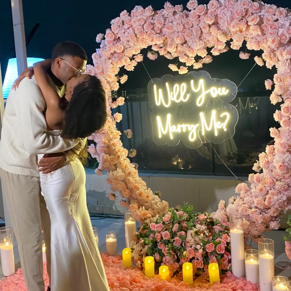 She wrote to her fiancé Tony, “I never imagined a moment could hold this much happiness. Seeing you move with such intentionality, planning for our future with me in mind and even flying across an entire ocean to propose in Lagos on your first trip out of the USA. This chapter feels surreal in the most beautiful way. Here’s to love that feels like home, to growing side by side, and to a future filled with laughter, adventure, and so much love 🤍.”