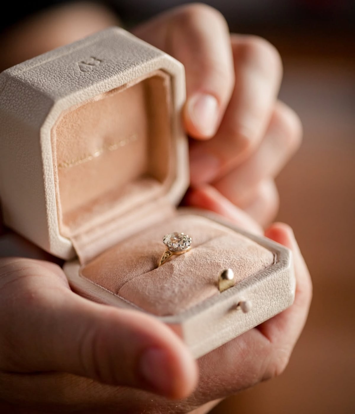 She wrote, “From this insane antique diamond and engraved band from @andriabarbonejewelry (a site I spent HOURS ON and never told him), to a custom music box playing our Billy Swan song, in the location that’s special to both of us, - I literally want to cry thinking about all the detail he put into this moment 🥹.”