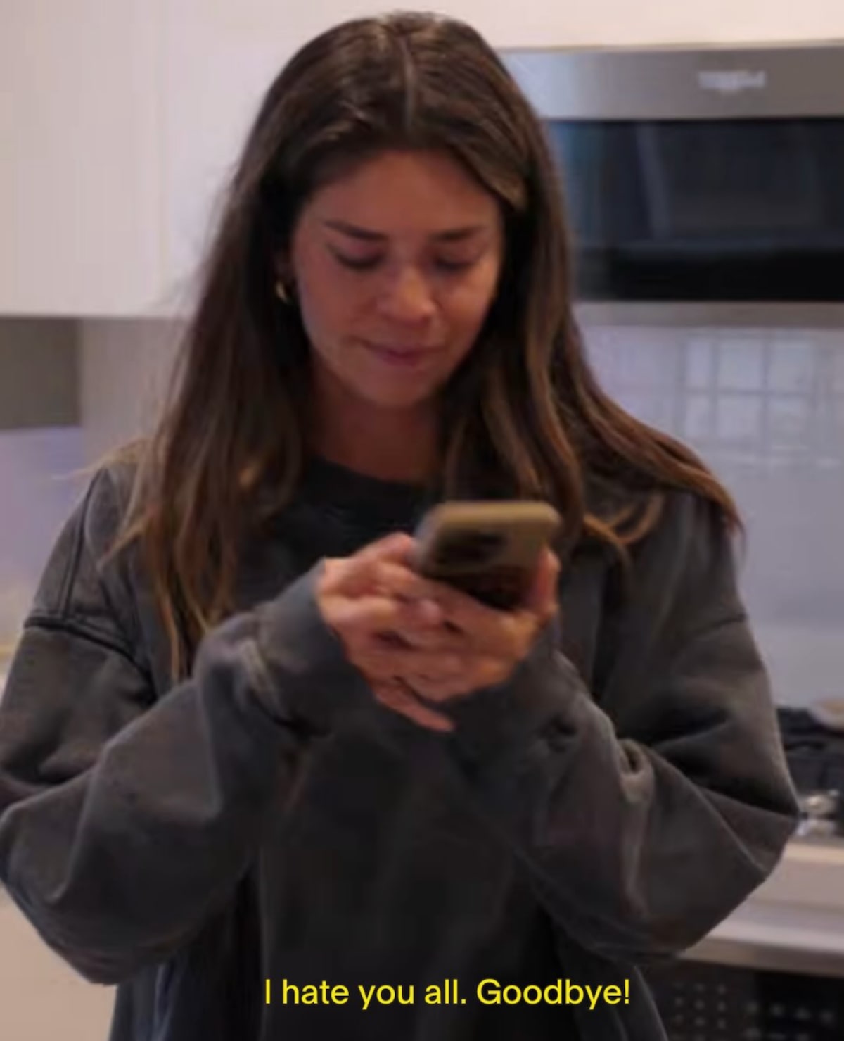 The next screenshot reveals Taylor holding her phone and emotionally, saying, “I hate you all. Goodbye!”
