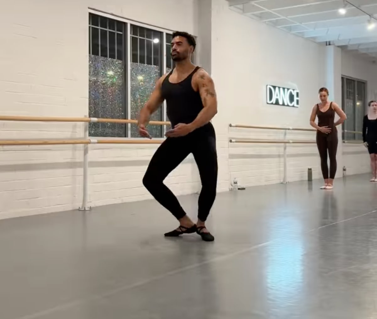 In the clip, Justin is seen doing pliés across the room, attempting leaps, and rocking a pair of black ballet slippers.