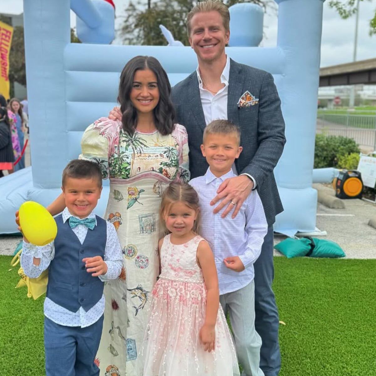 She said, “I’ve been obsessed with you since Day 1 (and if we’re really counting, even before that when they showed you doing pushups on your Bachelorette season🤤). Happy 12 year wedding anniversary @seanloweksu! I’m exactly where I want to be — snowed in, playing scrabble and watching a movie with you and our precious children 🥰”