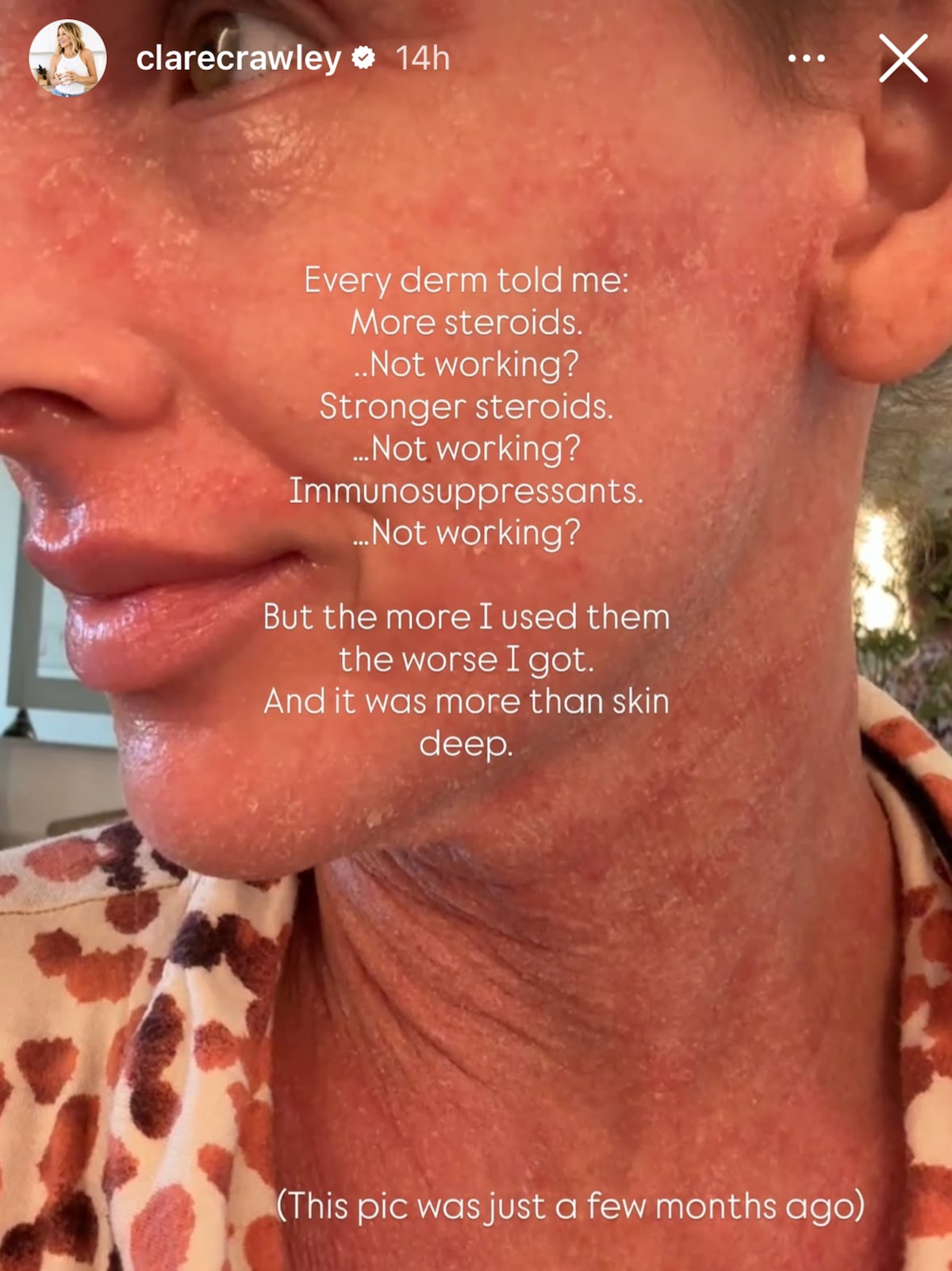 Clare has been keeping fans updated with her life online and opened up earlier last year about struggling with TSW (topical steroid withdrawal).