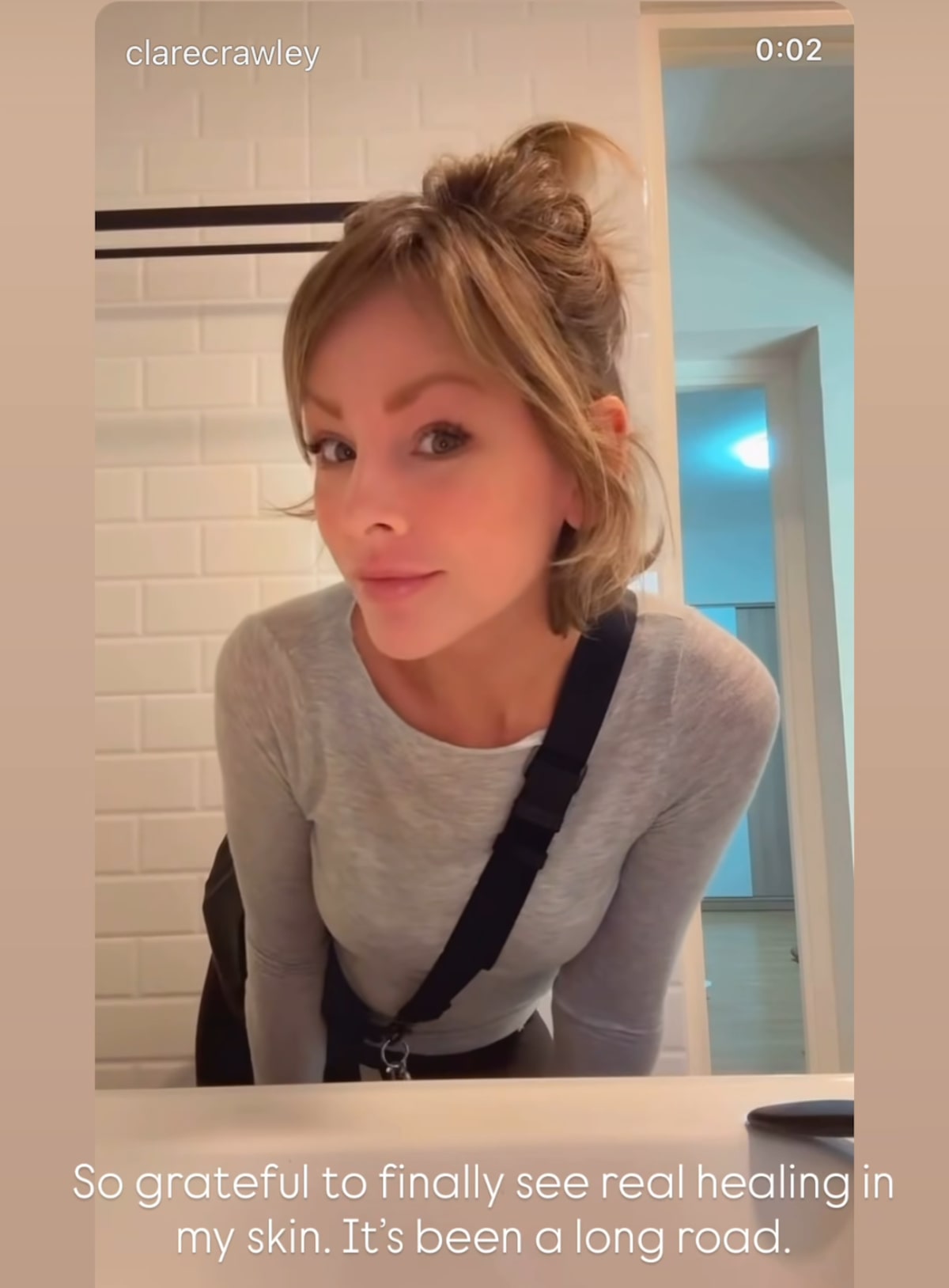 In a new post on Instagram, Clare posted a video that shows her face with clear skin and no redness.