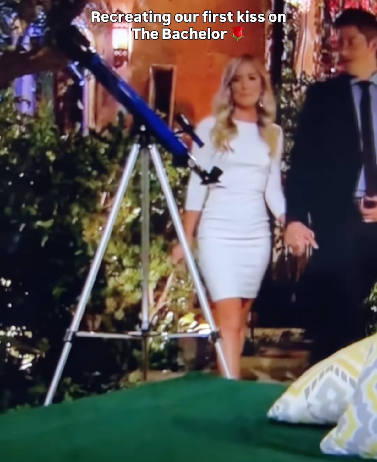The former Bachelor posted a video on social media, showing clips from their kiss on the show to Arie’s recreation in their backyard.