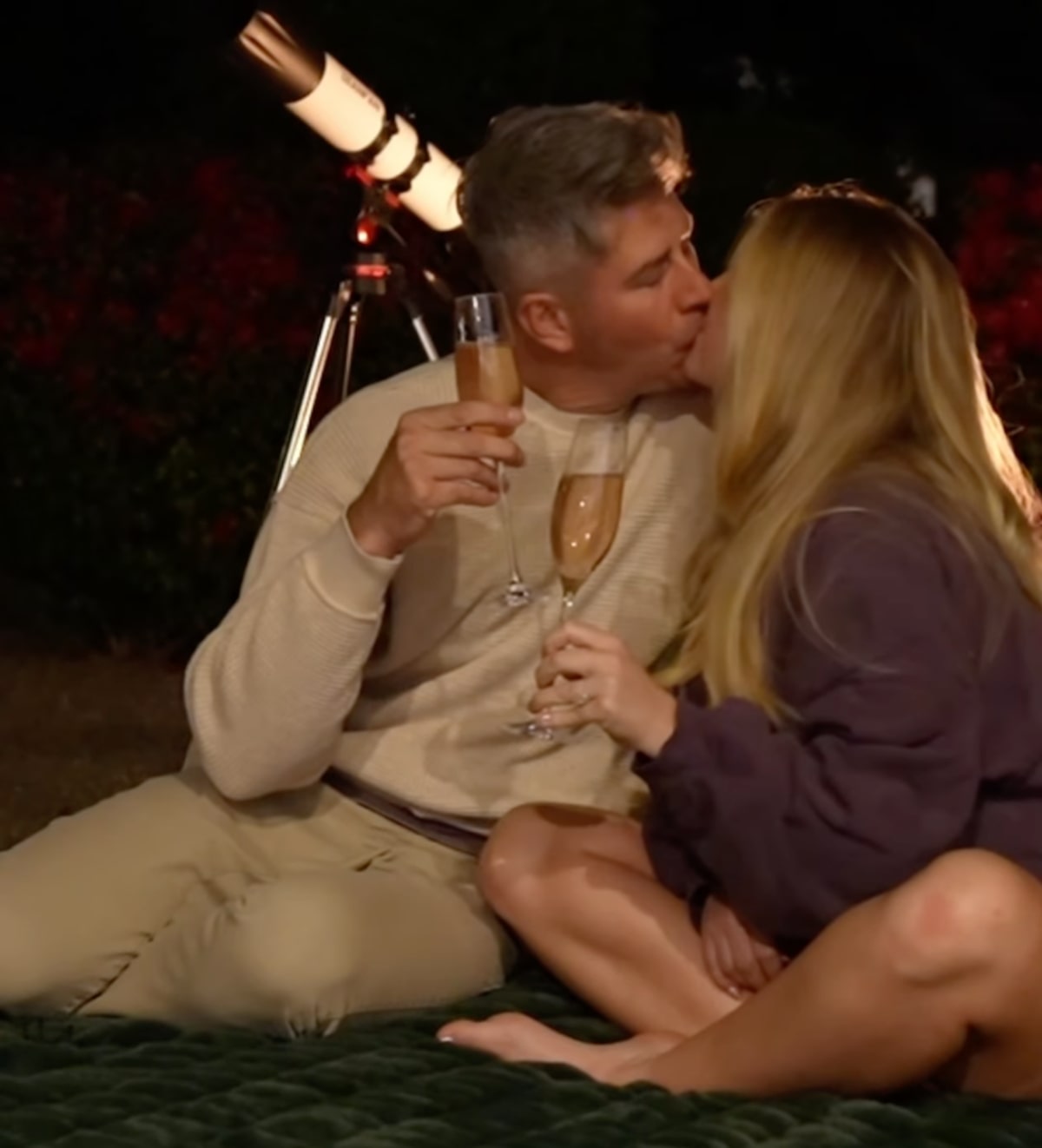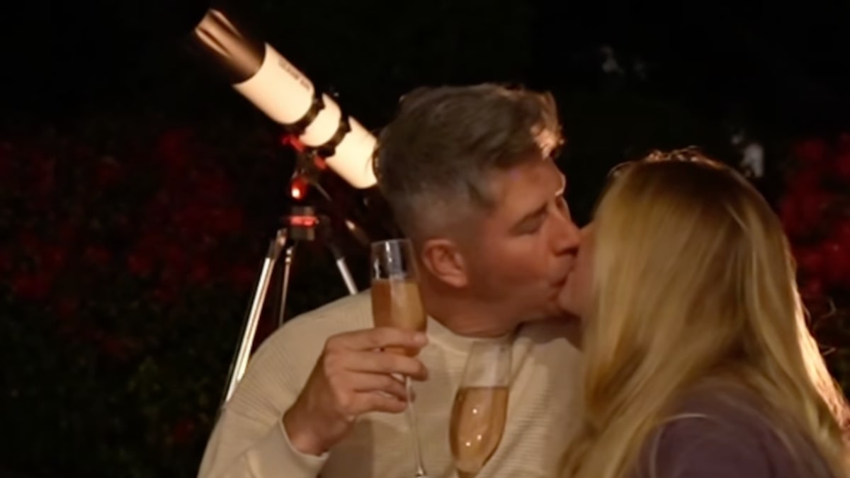 The clips show Arie and Lauren looking through a telescope at the stars and then enjoying glasses of champagne on a daybed.