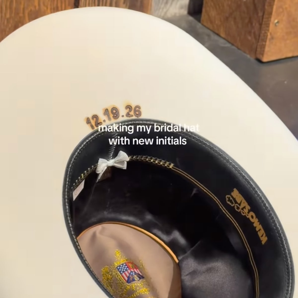 In the post, Daisy shows herself getting a custom bridal cowboy hat made with her new initials “DH” imprinted on the side.