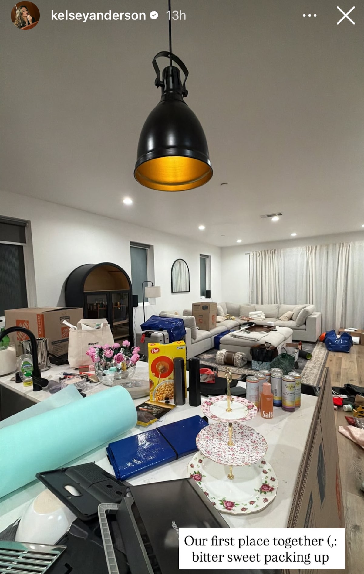 Kelsey took to her Instagram page and posted a picture of their packing progress, showing the kitchen and living room.
