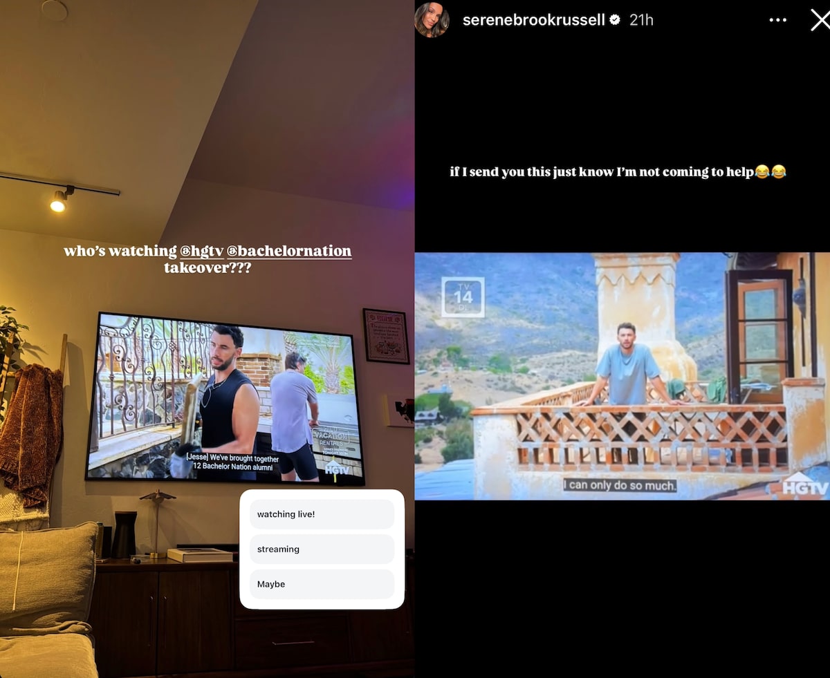Serene Russell also shared on her Story, “Who’s watching @hgtv @bachelornation takeover???” and added a poll with options, “watching live!, streaming, maybe.”