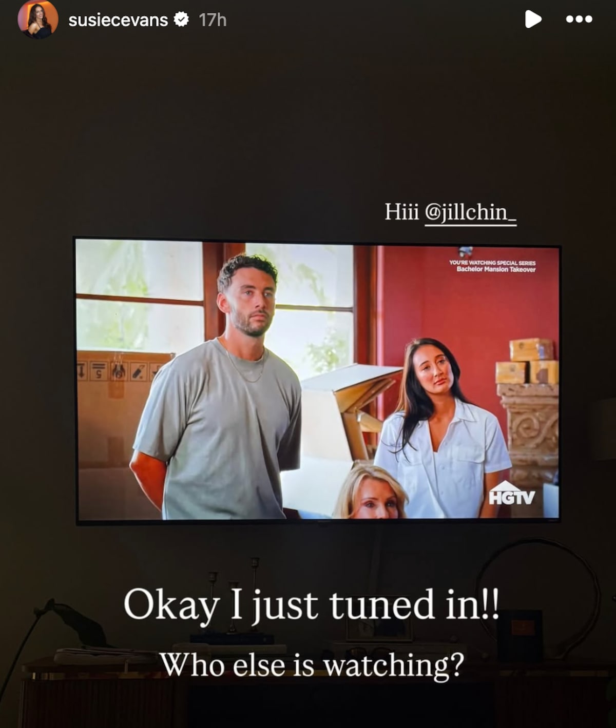 Fellow Bachelor Nation stars posted snapshots on their Instagram Stories of the show, such as Susie Evans, who wrote, “Okay I just tuned in!! Who else is watching?”