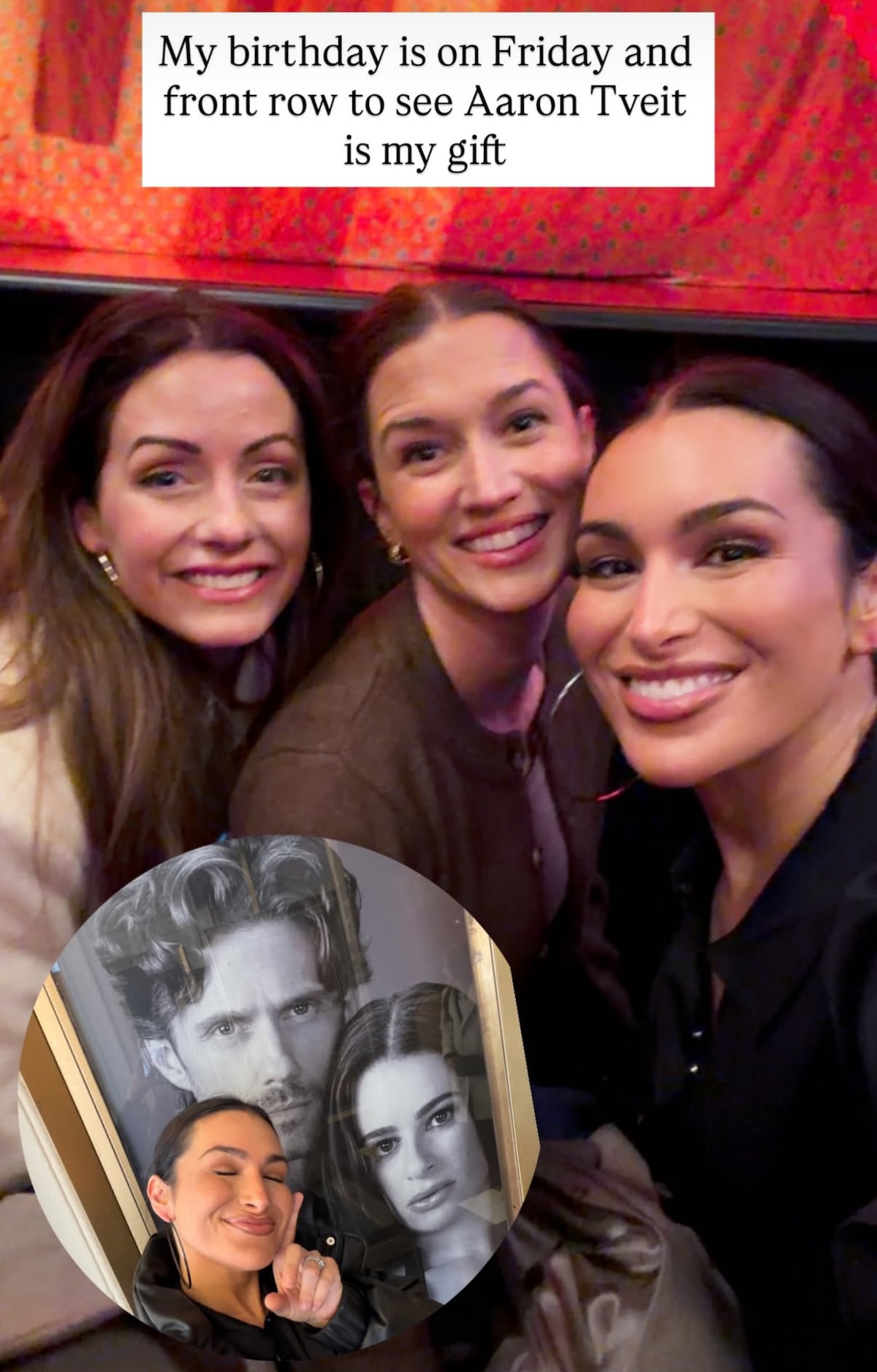 The three Bachelor Nation stars then posed in front of the poster for the musical “Chess” and revealed they got front-row seats for Ashley’s birthday.