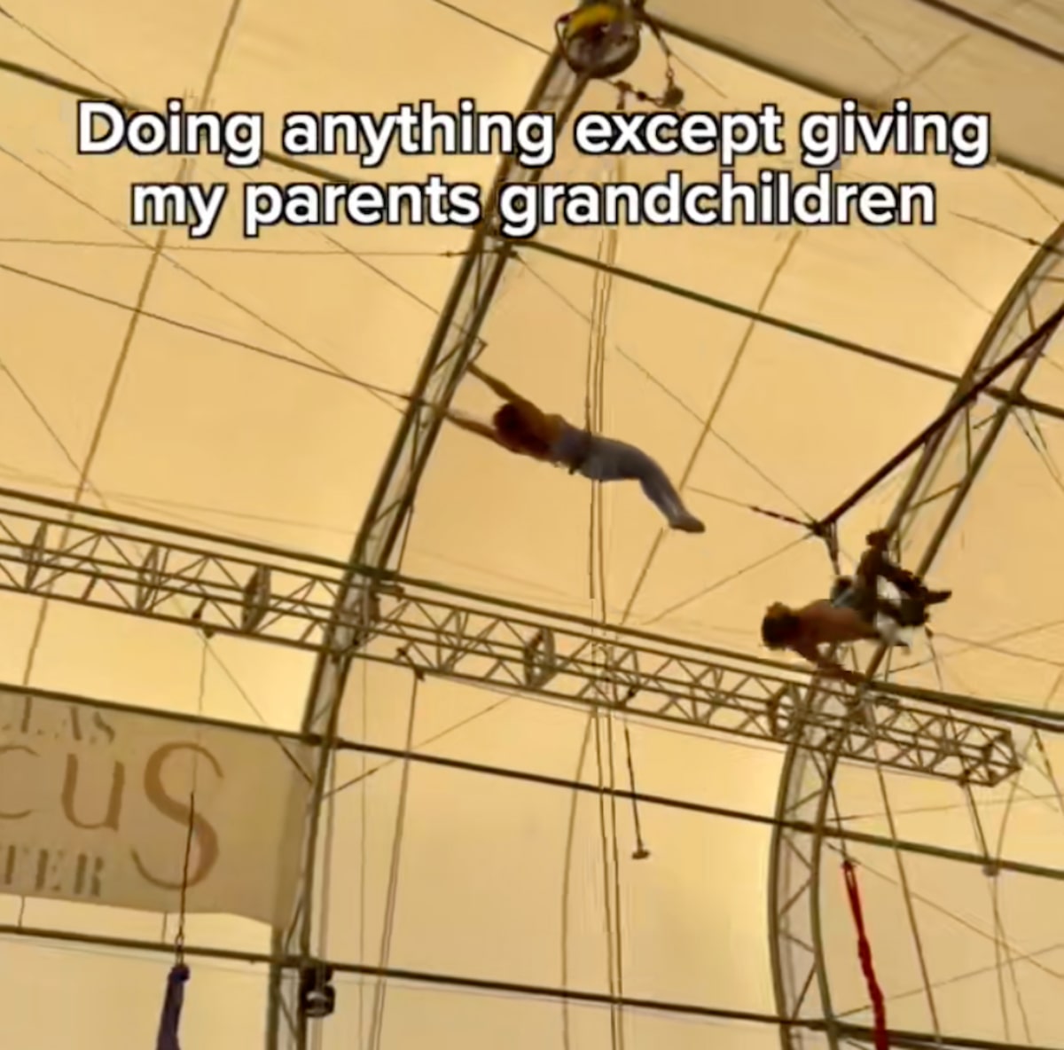 The time for kids will come, but for now, we’re fully here for the trapeze content. Keep it coming!